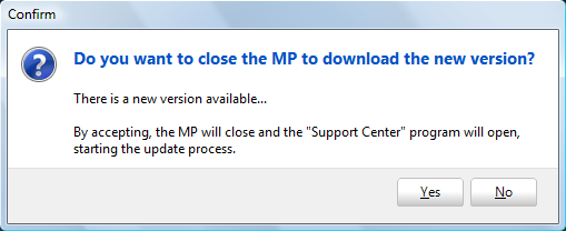 This message will appear, every time that the MP version 9 program is executed until the update process has been completed. If you want start the update process at these moment click on the Yes.